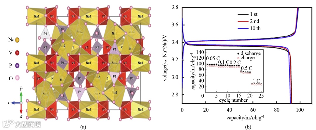 图2 Na3V2(PO4)3的晶体结构(a)和充放电曲线(b)