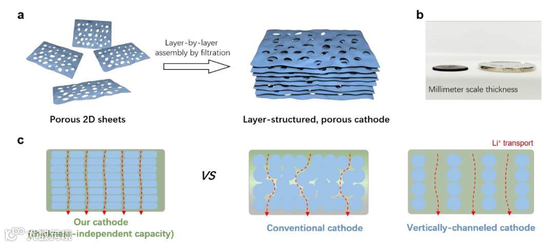导读:该文章创新性地提出了“二维多孔片层层组装”的厚电极构筑新策略,实现了锂离子电池厚电极中面积容量和体积容量的双提升。