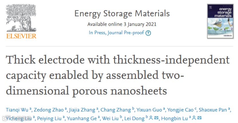 董雷博士、卢红斌教授,Energy Storage Materials观点:二维多孔片层层组装实现锂电厚电极面积容量和体积容量的双提升