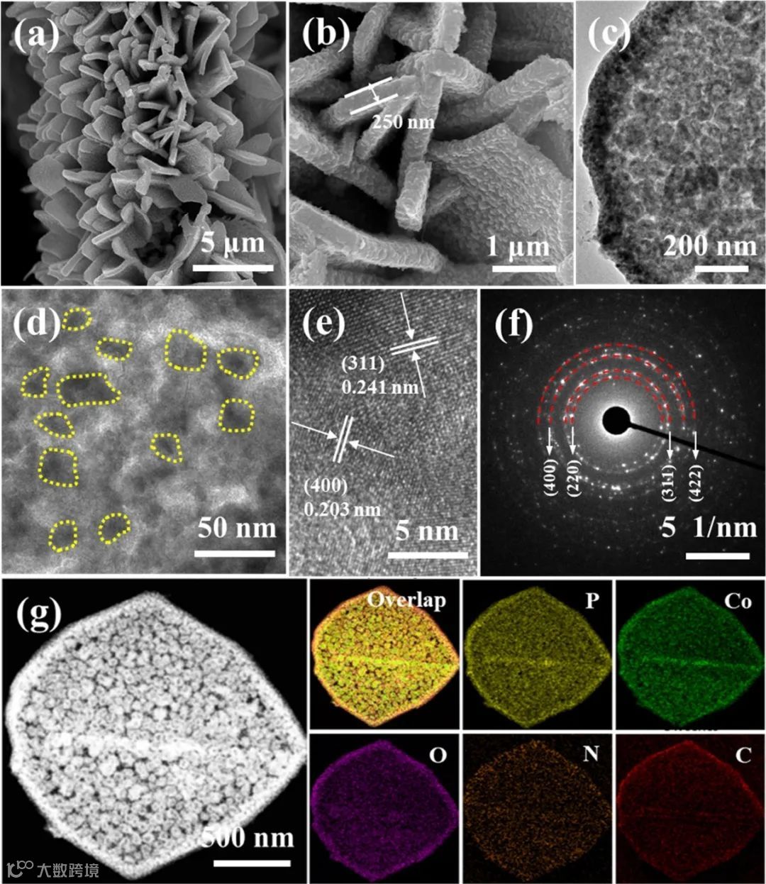 图3. Co3O4 @ NC和P–Co3O4 @ PNC的结构表征。