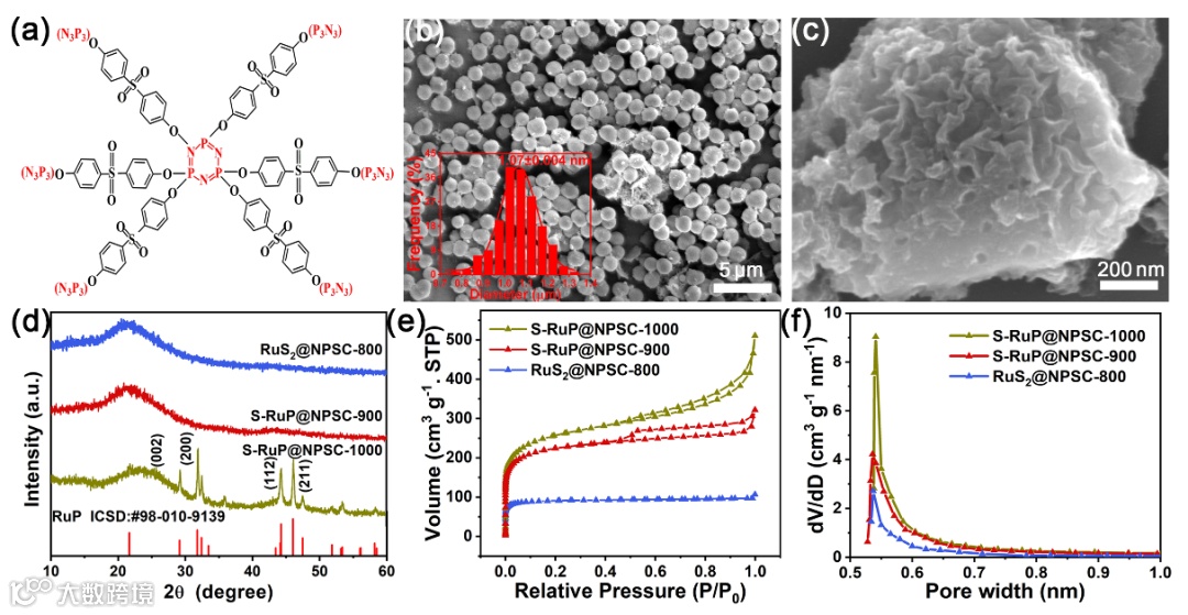 通过控制煅烧温度可以调节PZS中Ru和P,S元素之间的键合结构,以获得可控相组成RuS2@NPSC(800°C)和S-RuP@NPSC(900和1000°C)。所获得的S-RuP @ NPSC-900作为电催化剂具有类铂活性和优异的长期稳定性。S-RuP@NPSC-900具有高的Ru金属利用率,250 mV过电位下相应的质量催化活性是20 wt%Pt/C的22.88倍。