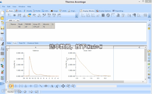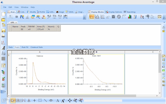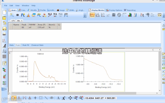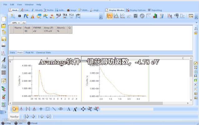 首先,需要用Avantage软件一键计算得到功函数位置,这是软件内部集成了一套自动找二次电子截止边算法,超级节省时间。