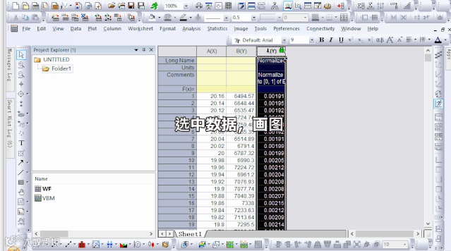 画图也比较简单,先复制Avantage里的数据到Origin里面,并进行归一化操作,然后绘图即可。数据复制+归一化如下动图: