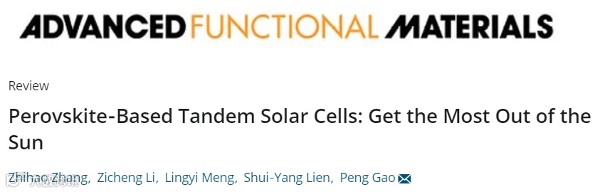 近日,中国科学院福建物质结构研究所高鹏研究员课题组在材料领域顶级期刊Advanced Functional Materials (影响因子:16.836) 上发表题为“Perovskite-Based Tandem Solar Cells : Get the Most Out of the Sun”的综述文章。