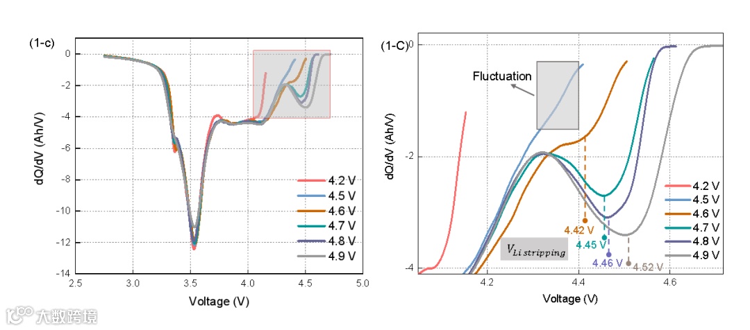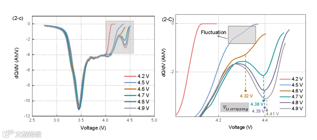 图1.基于差分方法在不同截止电压下的实验析锂检测结果.