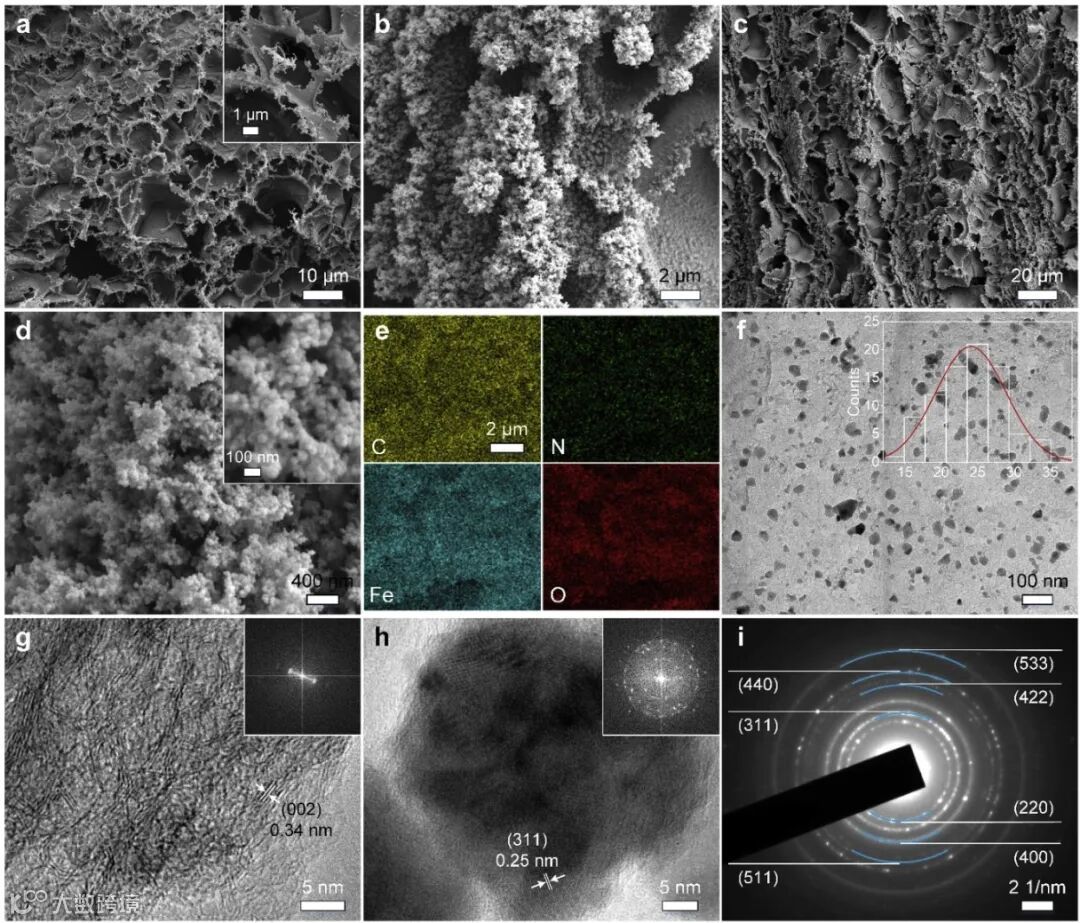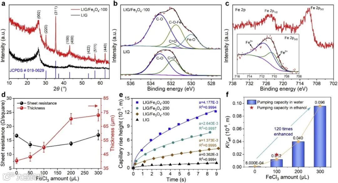 图3. LIG和LIG / Fe3O4纳米颗粒复合材料的材料表征。