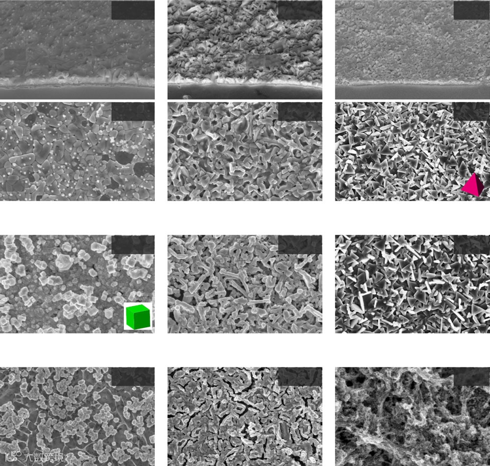 为了最大限度地提高Cu(100)表面的量,Chen等人报道了当Cu箔在0.1M KCl中的氧化电位和还原电位之间循环时形成的Cu的立方微结构。其他研究者采用类似的方法制备具有立方微结构的Cu催化剂,并研究了产品选择性作为等离子体处理、其他卤化物离子或残余氧化物的稳定性(用18O标记表示)的函数。在所有情况下,催化剂对乙烯的选择性比对甲烷的选择性更强。然而,在这些研究中报告的C2H4的FE在15%和45%之间。这种差异可能是由于所采用的电化学循环方法的化学复杂性。
