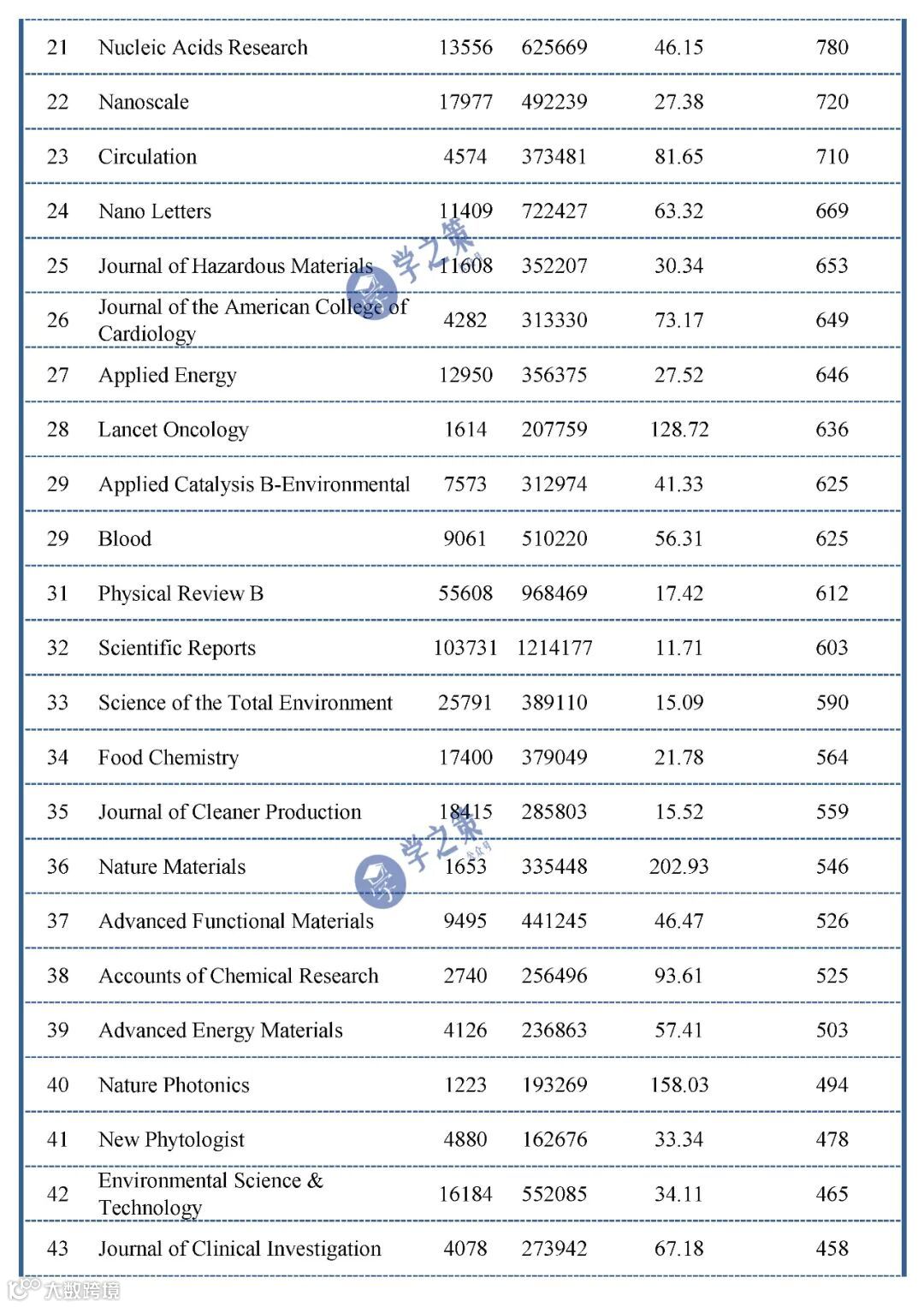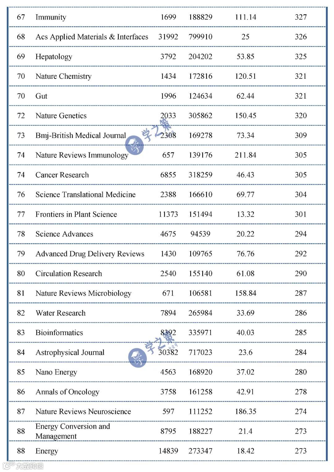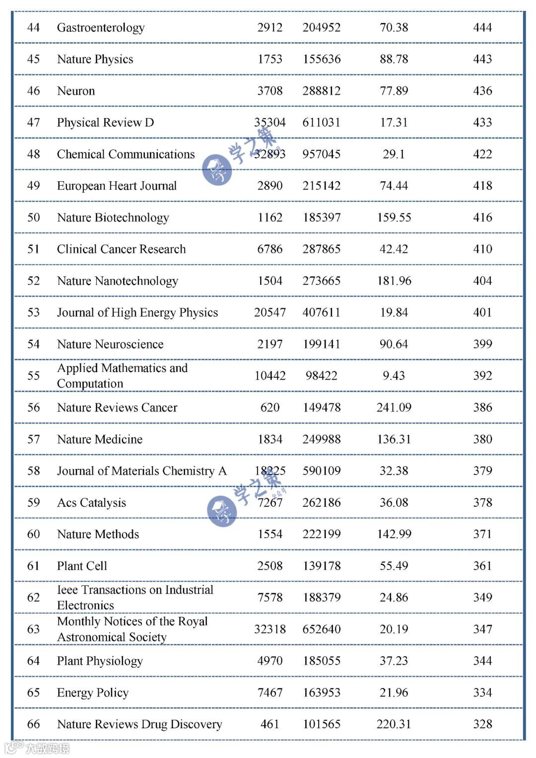 影响力很大的综合性期刊NC和PNAS,材料化学领域的Angew和AM,医学领域的新英格兰和柳叶刀也都顺利入主前十。