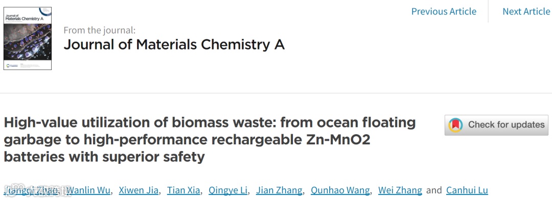高值化利用生物质废弃物:从海洋漂浮垃圾到高性能超安全的Zn-MnO2电池