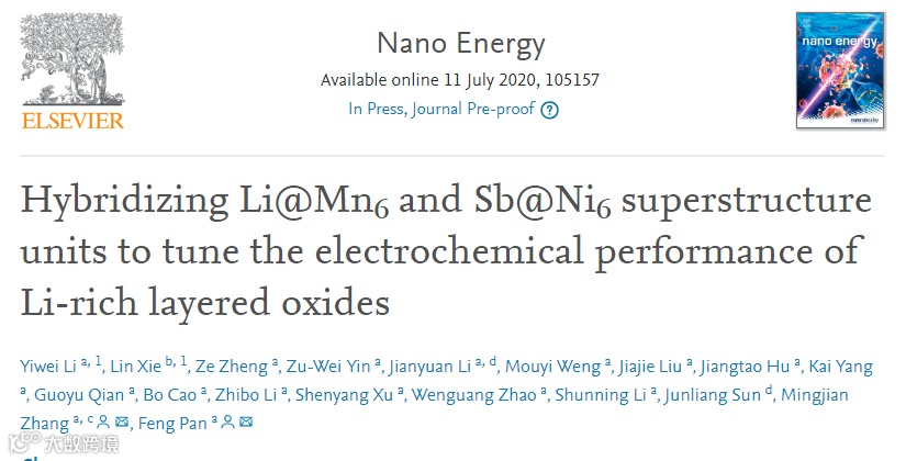 基于以上现状,北京大学深圳研究生院的潘锋教授和张明建研究员等人等在国际知名期刊Nano Energy上发表题为“Hybridizing Li@Mn6 and Sb@Ni6 superstructure units to tune the electrochemical performance of Li-rich layered oxides”的论文。Yiwei Li和 Lin Xie共同为本文第一作者。