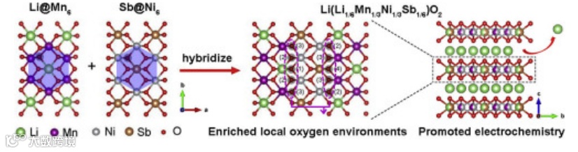 本文通过将Li@Mn6与相似的上层结构单元Sb @ Ni6复合,设计并合成了一种新的富Li的层状氧化物正极Li(Li1/6Mn1/3Ni1/3Sb1/6)O2。