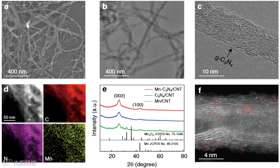 要点一:利用一步热解法在碳纳米管(CNTs)上制备了具有Mn-N3活性位点的嵌入在石墨氮化碳(g-C3N4)的Mn SACs(Mn-C3N4/CNT),碳纳米管的加入改善了g-C3N4的导电性,可用于高效的CO2RR催化。