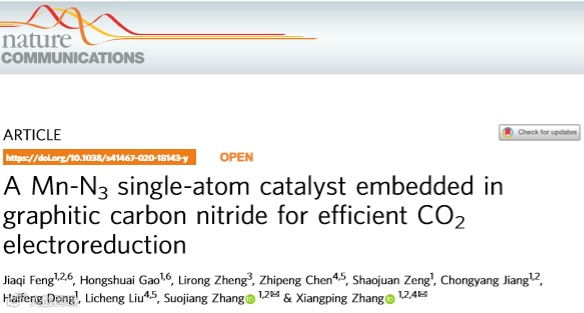 张锁江院士&张香平教授团队Nat Comm:嵌入在石墨氮化碳中的Mn-N3单原子催化剂用于高效CO2电还原 科学材料站
