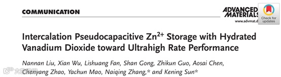 Intercalation Pseudocapacitive Zn2+Storage with Hydrated Vanadium Dioxide toward Ultrahigh Rate Performance,Adv. Mater. 2020, 1908420.