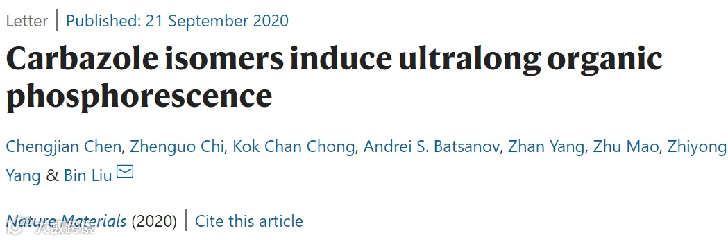 Carbazole isomers induce ultralong organicphosphorescence(Nature Materials, 2020, DOI: 10.1038/s41563-020-0797-2)