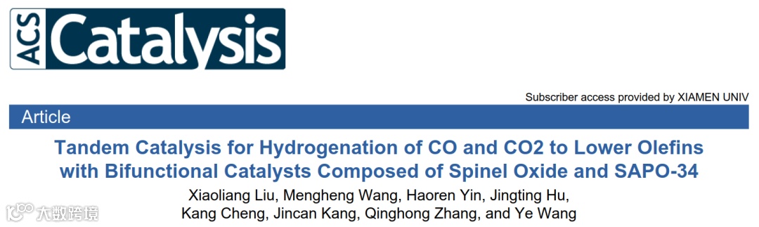 基于以上现状厦门大学成康博士、张庆红教授、王野教授等在国际知名期刊ACS Catalysis上发表题为“Tandem Catalysis for Hydrogenation of CO and CO2 to Lower Olefins with Bifunctional Catalysts Composed of Spinel Oxide and SAPO-34”的论文。Xiaoliang Liu,Mengheng Wang为本文共同第一作者。