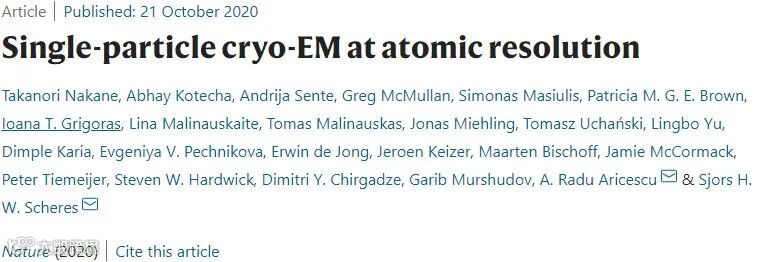 2020年10月21日,Nature背靠背在线刊发了冷冻电镜在原子分辨上的最新成果。