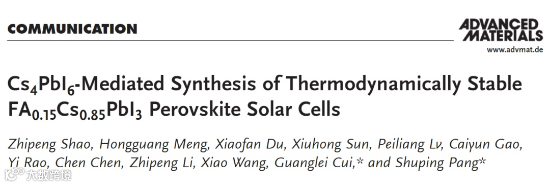 Cs4PbI6诱导合成相稳定的FA0.15Cs0.85PbI3钙钛矿太阳能电池