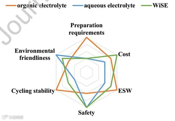 图1. 有机和水系电解质 (包括WiSE) 的对比