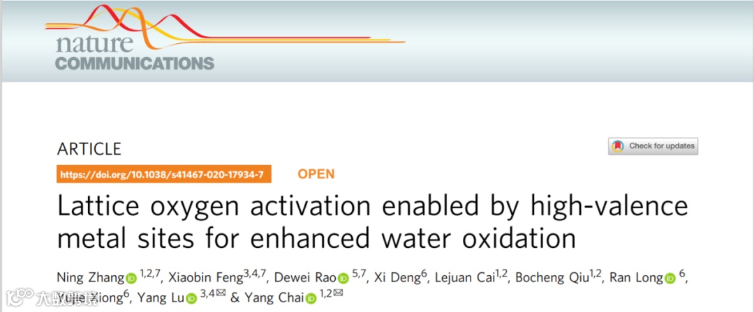 Nature communications:高价金属位促进水氧化的晶格氧活化