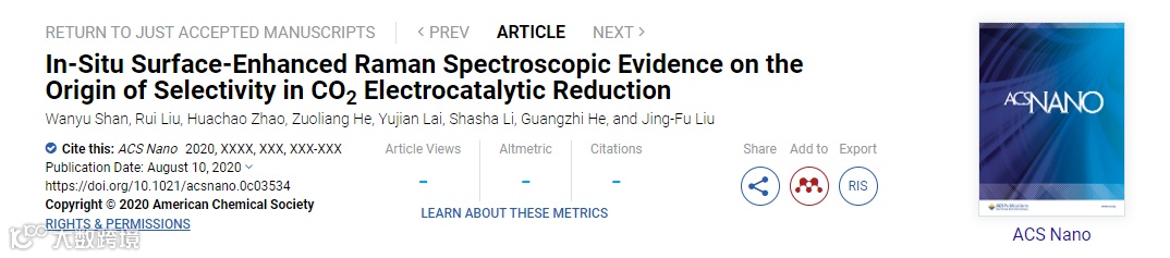 近日,中国科学院生态环境研究中心环境化学与生态毒理学国家重点实验室刘景富研究员课题组在国际顶级期刊ACS Nano (影响因子:14.588) 上发表题为“In-Situ Surface-Enhanced Raman Spectroscopic Evidence on the Origin of Selectivity in CO2 Electrocatalytic Reduction”的研究工作。