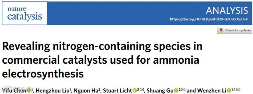 Chen, Y., Liu, H., Ha, N. et al. Revealing nitrogen-containing species in commercial catalysts used for ammonia electrosynthesis. Nat. Catal. (2020). https://doi.org/10.1038/s41929-020-00527-4