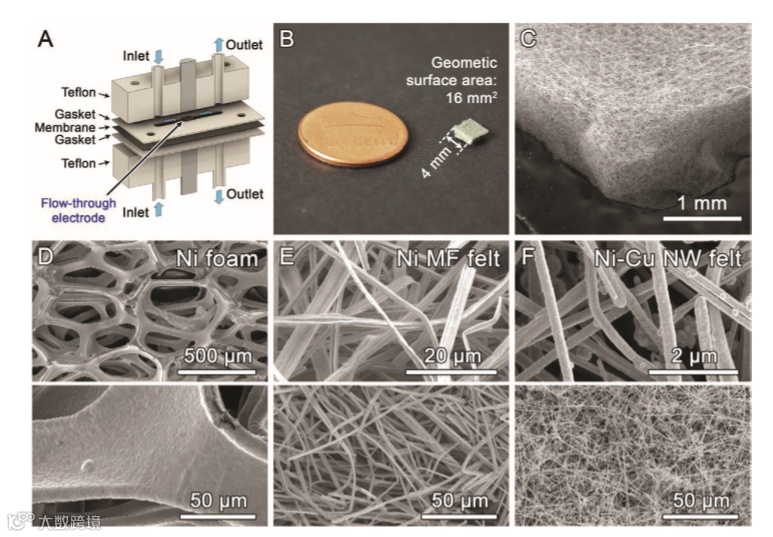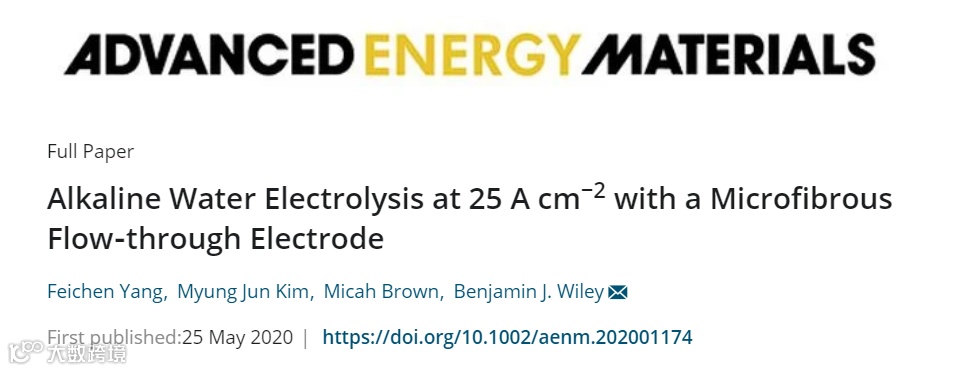 25 A cm−2电流下,用微纤维电极进行碱性水电解
