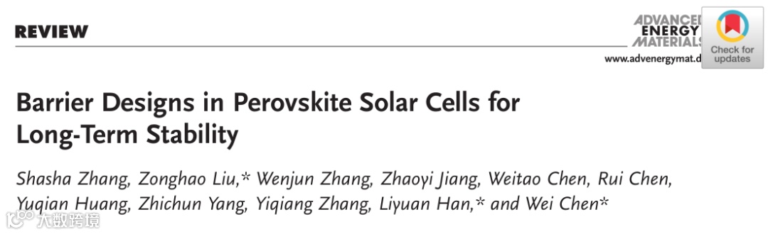 近日,华中科技大学陈炜教授课题组联合上海交通大学韩礼元教授在国际顶级期刊Advanced Energy Materials (影响因子:25.245) 上发表题为“Barrier Designs in Perovskite Solar Cells for Long-Term Stability”的综述工作。