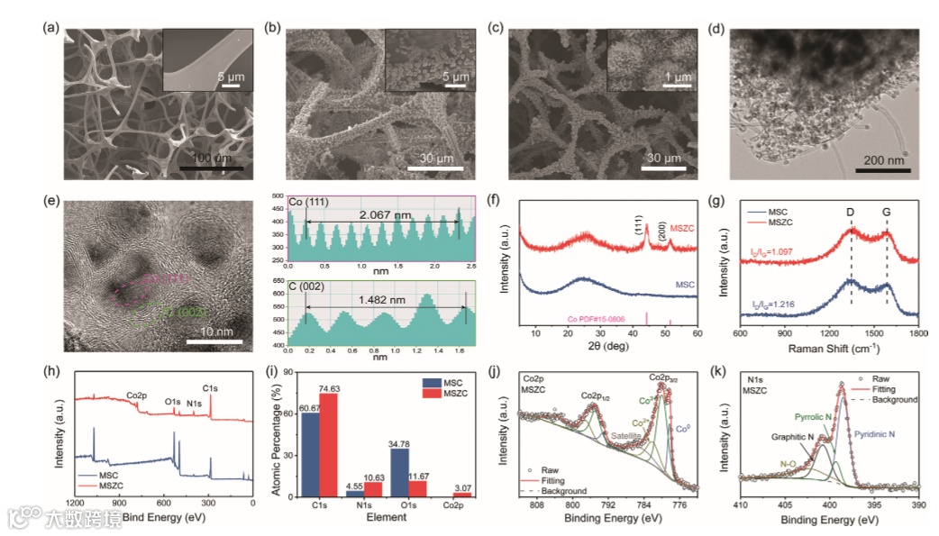 在此,作者证明了在贫电解质条件下,采用层间策略改善锂硫电池电化学性能的可行性。作者制作了一个三维开放结构的独立夹层,这有助于电解质渗透而不会捕获太多的电解质。用电催化物种修饰层间骨架表面,以提高锂-多硫化物的转化率。用ZIF-67负载三聚氰胺海绵(MS)热裂解制备了功能夹层。MS广泛用于厨房清洁,且ZIF-67生长和热解很容易放大。最终的MS-ZIF-67衍生复合材料(MSZC)夹层用于锂硫电池,其正极(3-4 mg cm-2)含硫量高,电解质/硫比低(低于10μL mg-1)。夹层的使用即使在0.5c的高电流率下也大大提高了电池的放电容量。图1. 材料微观形貌及结构元素表征 文章链接:Electrocatalytic Interlayer with Fast Lithium–Polysulfides Diffusion for Lithium–Sulfur Batteries to Enhance Electrochemical Kinetics under Lean Electrolyte Conditionshttps://onlinelibrary.wiley.com/doi/10.1002/adfm.202000742老师简介:陈人杰 教授陈人杰,2002-2005,北京理工大学博士学位(导师吴锋教授);2005-2007,清华大学化学系,博士后(导师陈立泉院士、邱新平教授);2007-2015,北京理工大学化工与环境学院,教授(2011);2012-2013,英国剑桥大学材料科学与冶金系,访问教授;2015-至今,北京理工大学材料学院,教授、博导(新能源材料与器件)。主要研究领域:多电子高比能二次电池新体系及关键材料、新型离子液体及功能电解质材料、特种功能电源全固态二次电池器件及薄膜材料。作为负责人,承担了国家自然科学基金项目、国家重点研发计划项目、国家863计划等课题。发表SCI收录论文148篇;申请发明专利52项,获授权22项;作为主要参加人,获得国家技术发明二等奖1项、部级科学技术一等奖3项。2009年入选教育部“新世纪优秀人才支持计划”,2010年入选北京市优秀人才培养资助计划、北京市科技新星计划。中国材料研究学会理事,中国固态离子学会理事,国际电化学能源科学学会(IAOEES)委员会委员,北京电动车辆协同创新中心研究员。