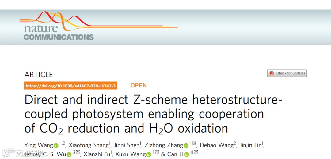 文章链接:Direct and indirect Z-scheme heterostructure-coupled photosystem enabling cooperation of CO2 reduction and H2O oxidationhttps://www.nature.com/articles/s41467-020-16742-3 导师简介: 李灿 院士李灿,物理化学家,中国科学院院士、第三世界科学院院士,中国科学院大连化学物理研究所研究员、博士生导师,洁净能源国家实验室(筹)主任,中国科学技术大学化学与材料科学学院院长,催化基础国家重点实验室主任。1980年李灿从河西学院毕业后留校任教;1983年考入中国科学院大连化学物理研究所攻读硕士研究生;1989年获得中国科学院大连化学物理研究所和日本东京工业大学联合培养博士学位,之后进入中国科学院大连化学物理研究所工作;1993年晋升为研究员;2003年当选为中国科学院院士;2005年当选第三世界科学院院士;2007年出任中国科学院大连化学物理研究所副所长;2008年当选欧洲人文和自然科学院外籍院士。2014年获得中国催化成就奖。李灿主要从事催化材料、催化反应和催化光谱表征方面的研究,并致力于太阳能光催化制氢以及太阳能光伏电池材料研究。 王绪绪 教授王绪绪,博士,教授,博士生导师,获国务院政府特贴。1976-1979年陕西师范大学化学系学习;1985-1988年陕西师大和北京大学化学系学习,获硕士学位;1996-2000年法国里昂化学物理电子大学(CPE-Lyon)留学,获博士学位。1979-1996年陕西师范大学化学系物理化学教研室任教,1986年任讲师,1992年任副教授;2000年被引进到福州大学,任教授,物理化学、工业催化和环境化学博士点博士生导师,环境化学博士点负责人,光催化研究所副所长。科学研究主要涉及沸石分子筛表面修饰和催化,光催化基础与应用等领域。在沸石分子筛修饰和催化领域,主要开展采用表面金属有机化学方法和技术,研究金属有机化合物或配位化合物与沸石分子筛表面基团(羟基、桥氧基团)的定量接枝反应,通过在孔道表面制备具有明确组成和结构的化合物对沸石分子筛材料进行分子水平的修饰,以获得具有独特功能的催化材料并揭示其催化作用本质。迄今开展了包括有机锡、锗、锆、铜、铁、钛等在内的一系列有机金属化合物与ZSM-5、Y、丝光沸石、MCM-41等沸石分子筛表面反应的研究,并通过这些研究制备出了多种具有良好吸附性能和催化功能的材料,揭示了一些催化和光催化过程的作用机理。在光催化基础与应用研究方面,主要从事新型光催化材料的制备和光催化作用机理研究,光催化材料在空气净化、水净化和医疗卫生领域的应用技术开发。2001年以来先后主持包括国家自然科学基金项目、国家重大基础研究前期专项、863计划专项、福建省重大科技计划项目、卫生部-福建教育卫生联合攻关项目、福建省自然科学基金项目和福建省教育厅科技项目的等10余项课题。此外,作为主要骨干成员参与了国家重大科技攻关项目、国家自然科学基金重点项目、973计划以及军队科技项目等一系列课题的研究。2003年获国家科技进步奖二等奖1项(第3名),2002获得福建省科学技术一等奖(第5名)并取得三项国家科技鉴定成果。参与研制的光催化剂、光催化净化器、光催化自洁玻璃和瓷砖等产品已实现产业化,取得了良好的社会经济效益。在Chem. Eur. J., J. Catal., J. Phy. Chem. B, C., Chem. Commun., Micropor. Mesopor. Mater., J. Organometal. Chem., Langmuir, J. Photochem. Photobio. A, J. Mol. Catal., A, Chem. Lett. 等和国内《化学学报》、《高等学校化学学报》、《物理化学学报》、《无机化学学报》、《催化学报》、《结构化学》和《环境科学》等等国内外学术期刊发表学术论文120余篇,获10余项国家发明专利。