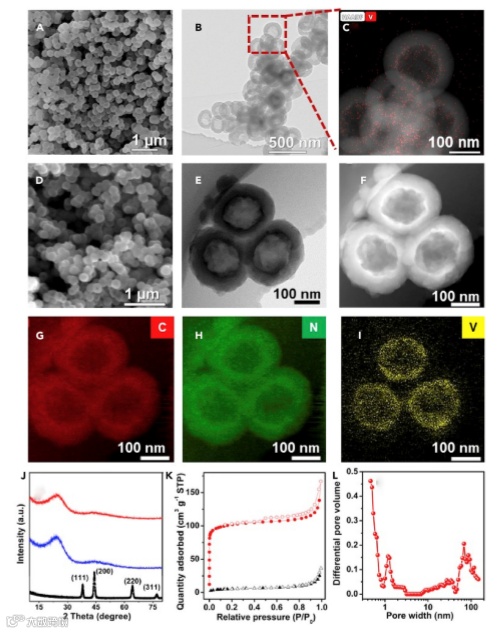 在本文中,作者报道了封装有各类金属氮化物/氧化物(如氮化钒(VN)、氧化钒(VO)、氮化钼(MoN)、氮化钨(WN)及其双金属化合物的HHSs的可控合成。HHSs是通过一步水溶液反应制备的,无需借助额外的模板,碳空腔内部封装了同轴的超细金属氮化物/氧化物(<5 nm)纳米颗粒。