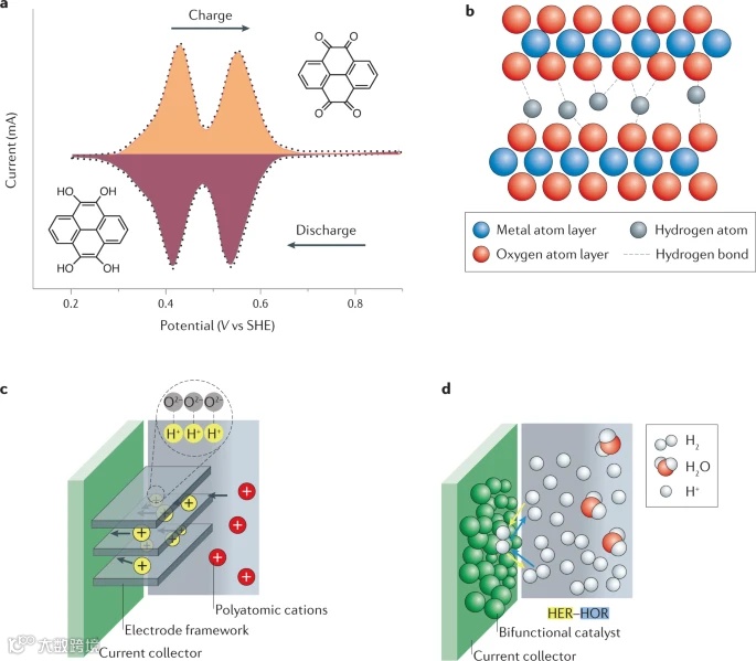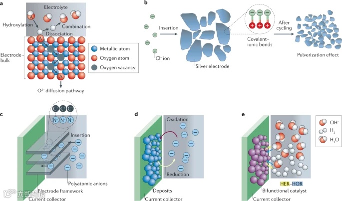 此外,非金属离子也可以通过转换成中性态来充当氧化还原中心,如利用竞争性反应HER/HOR作为出发点,如图3d所示,从而突破传统插入型电极材料的容量限制。
