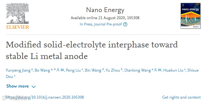 近日,哈尔滨工业大学王博副教授、王殿龙教授等人在国际知名期刊Nano Energy (影响因子:16.602) 上发表题为“Modified solid-electrolyte interphase toward stable Li metal anode”的研究工作。