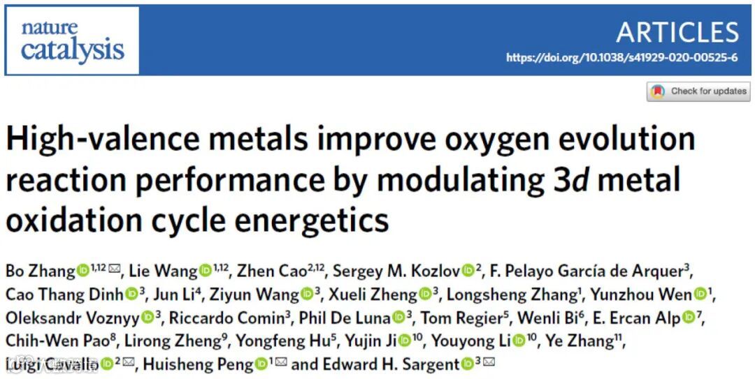 题目:High-valence metals improve oxygen evolution reaction performance by modulating 3d metal oxidation cycle energetics