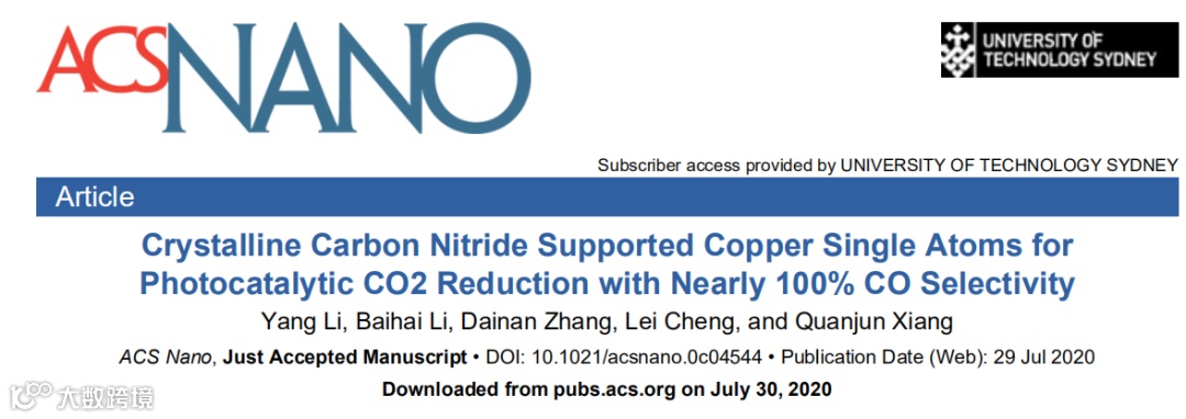 近日,电子科技大学向全军等在国际知名期刊ACS Nano (影响因子:14.588) 上发表题为“Crystalline Carbon Nitride Supported Copper Single Atoms for Photocatalytic CO2 Reduction with Nearly 100% CO Selectivity”的研究工作。