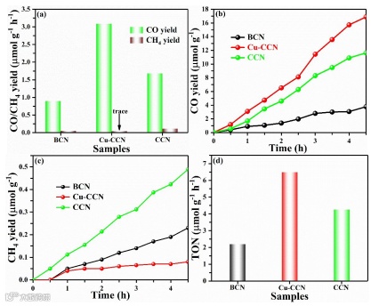 Cu-CCN,CCN,BCN样品光催化还原CO2的活性
