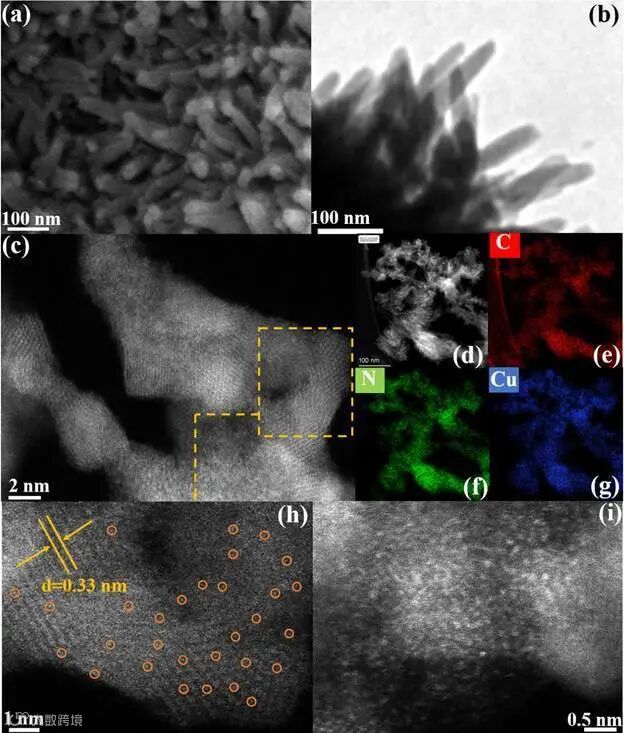 (d)中的插图显示了将单个Cu原子引入氮化碳的模型。