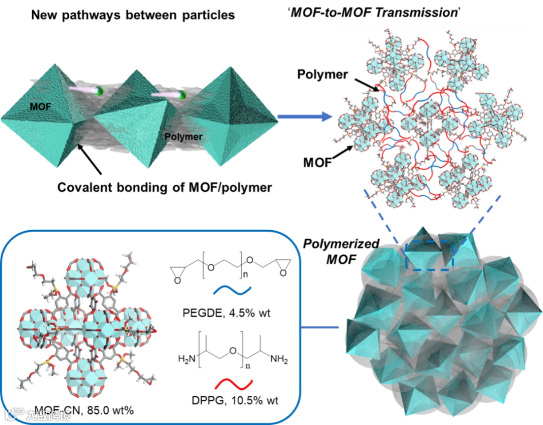 为了使MOF基SE具有更好的界面相容性,有必要在MOF颗粒之间形成更紧密的接触并建立离子传输通道。本文提出通过共价键合的方式,在MOF颗粒之间通过共价键连接导离子聚合物建立MOF颗粒间的离子传输通道。