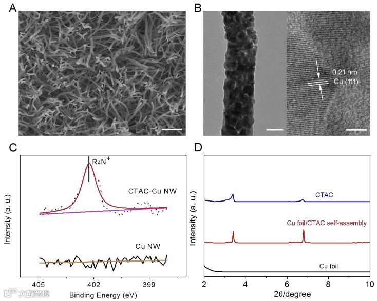 本文开发了一种由季铵阳离子表面活性剂促成的人工E/E界面,并以Cu-纳米线(Cu NW)电催化剂来展示这种界面设计,因为Cu NW具有多种反应路线和还原产物的CO2RR,并且对各种C1和C2+产物具有选择性,以及竞争性的HER。
