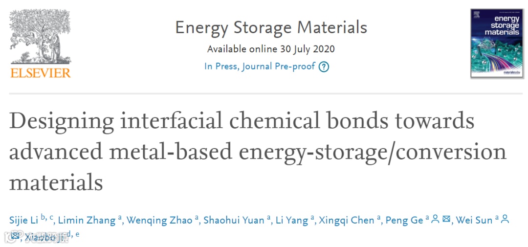 近日,中南大学孙伟教授&葛鹏副教授在国际顶级期刊Energy Storage Materials(影响因子:16.28)上发表题为“Designing interfacial chemical bonds towards advanced metal-based energy-storage/conversion materials”的综述文章。