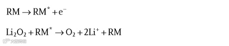 1、锂氧电池目前的障碍交通设备的电气化被公认为是一项有希望的战略,以尽量减少对化石燃料的依赖,并最终解决人类对气候变化的担忧。在下一代储能技术的所有候选产品中,锂-氧(Li-O2)电池因其高理论能量密度而备受关注。然而,现有的Li-O2系统存在主要问题,包括负极电极退化、正极堵塞,电解质不稳定性和高充电过电位。在作者之前的工作中,作者展示了一个锂-氧电池,在没有任何负极、正极和电解质失效迹象的空气样大气中运行多达700次循环。然而,放电产物分解的高充电电位(>4.0V vs Li/Li+)仍然是现有Li-O2系统实际开发的主要障碍之一。2、RMs总体反应机理虽然固体催化剂一直是催化放电产物分解的研究对象,最近的研究报道了基于氧化还原介质的液体催化剂的研究。这些研究表明,无论其大小、形状或厚度如何,氧化还原介质(RMs)可以有效地分解Li2O2,从而可以提高Li-O2电池的能量效率(减小的极化间隙)和循环性。RMs的总体反应机理总结在下列方程式中。在电池充电期间,RM最初被氧化到较高的氧化状态。氧化形式的RM(RM*)随后参与氧化放电产物(Li2O2)以形成Li+和分子氧(O2)。
