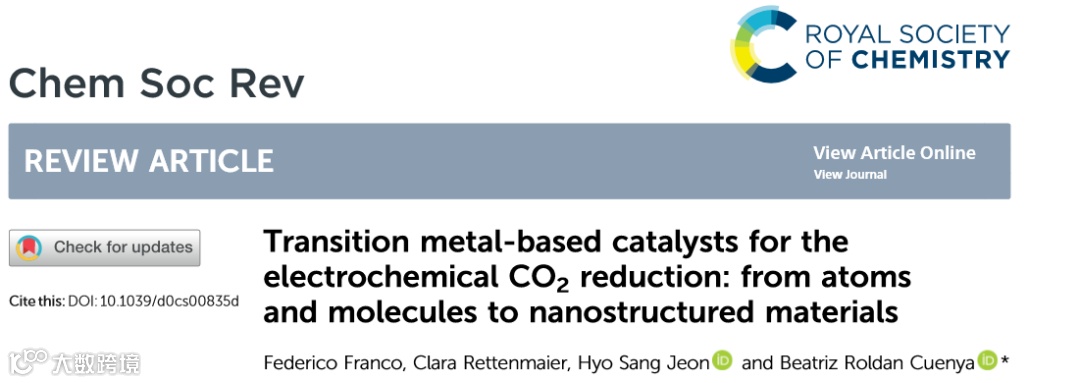为了弥补均相催化和多相催化领域之间的差距,近日,德国马普学会弗里茨·哈伯研究所Beatriz Roldan Cuenya教授在国际顶级期刊 Chemical Society Reviews(影响因子:42.846) 上发表题为“Transition metal-based catalysts for the electrochemical CO2 reduction: from atoms and molecules to nanostructured materials ”的综述。