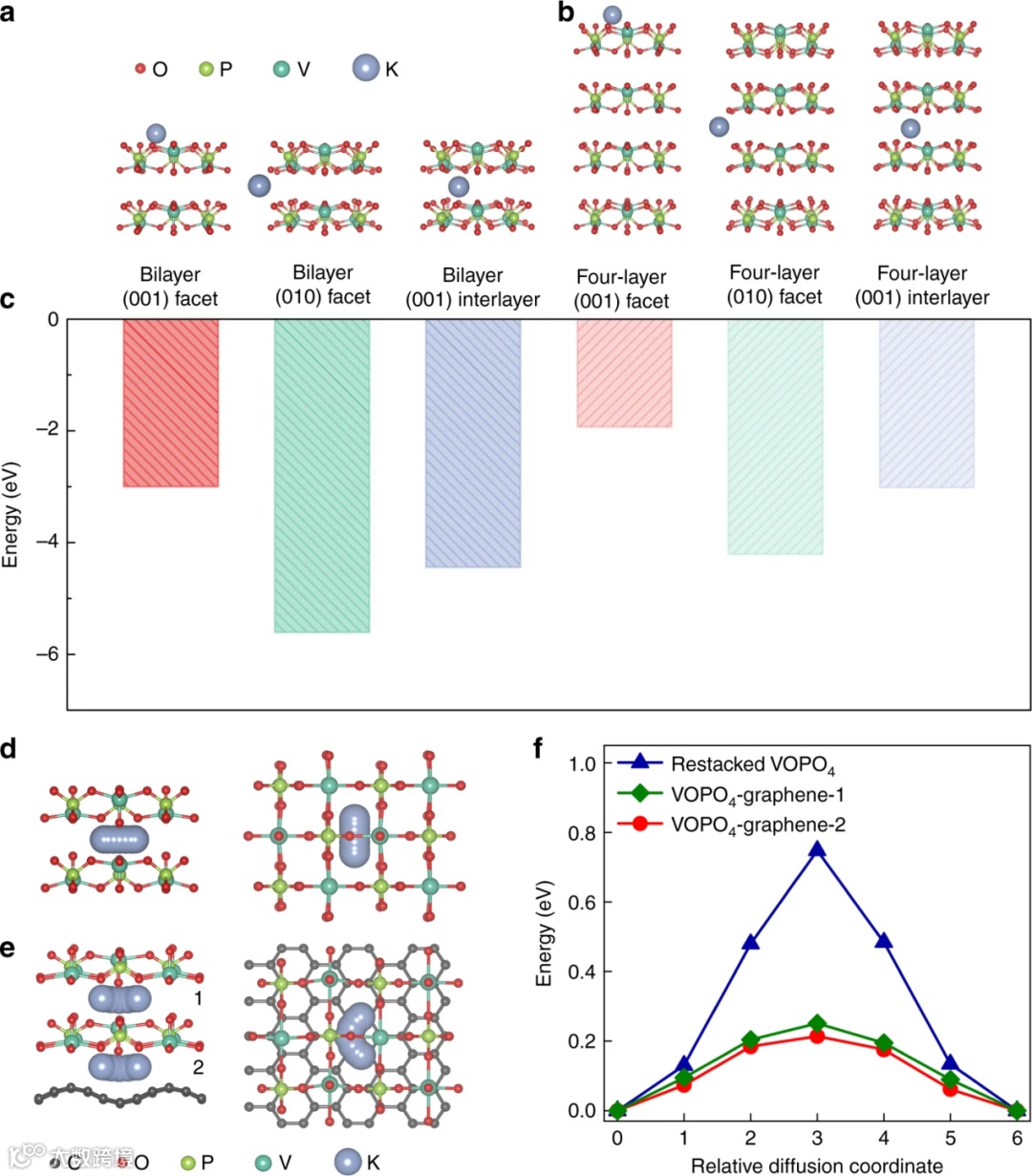 图4. 钾离子存储和扩散理论模拟分析