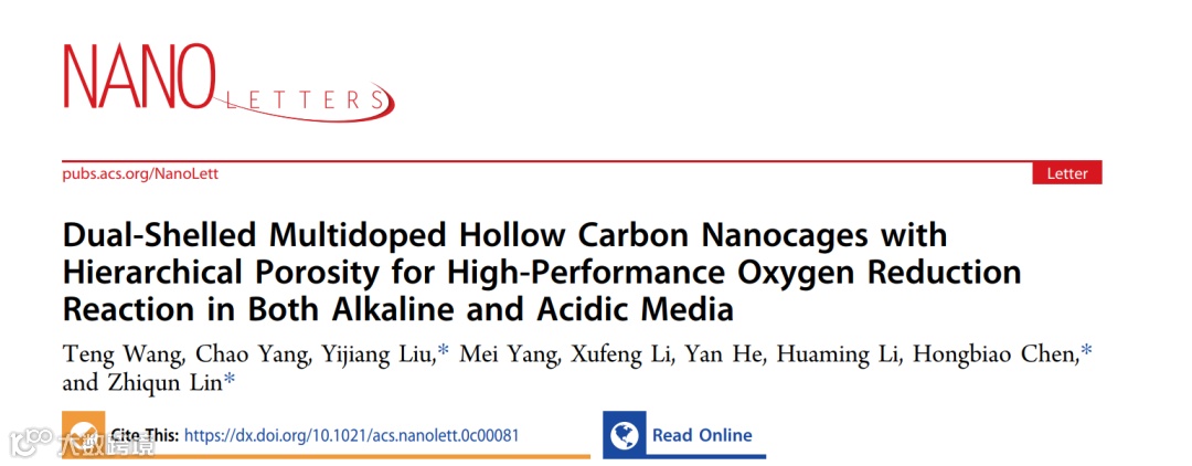 近日,湘潭大学化学学院陈红飙教授、刘益江副教授课题组在国际著名期刊Nano Letters上发表题为“Dual-Shelled Multi-Doped Hollow Carbon Nanocages with Hierarchical Porosity for High-Performance Oxygen Reduction Reaction in both Alkaline and Acidic Media”的研究工作。