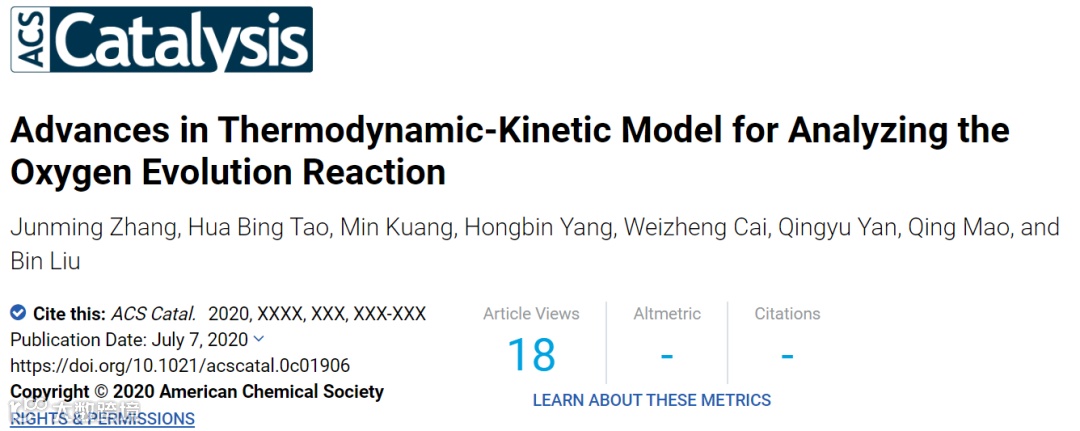 近日,新加坡南洋理工大学刘彬课题组在国际顶级催化期刊ACS Catalysis (影响因子:12.53) 上发表题为“Advances in Thermodynamic-Kinetic Model for Analyzing the Oxygen Evolution Reaction”的研究工作。