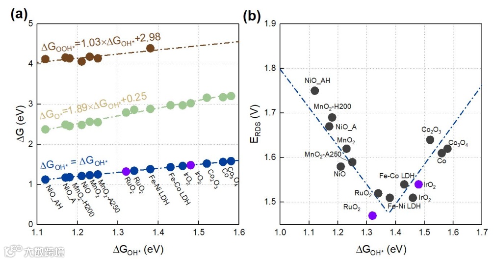 Scaling relation和volcano plot是DFT模型计算得到的两大经典定律,分别描述了含有相同元素的中间体在同一表面吸附能之间的半定量关系,和中间体吸附强弱对材料综合性能的影响。