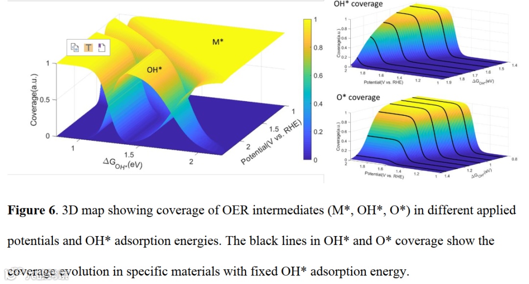 该工作在上一篇工作(J. Am. Chem. Soc. 2019, 141, 13803-13811)的基础上,进一步优化了多步电子传输反应中的热动力学模型的构建和应用。最终得出了包括中间体吸附能,传输系数(对称因子),以及材料表面中间体覆盖度等等在内的热力学,动力学与表面结构信息。最终结合多个典型金属氧化物材料的模型拟合结果给出了高性能催化剂设计与电化学深度分析的方向。
