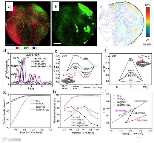 铁(Fe)、钴(Co)、镍(Ni)、铜(Cu)、锌(Zn)、铋(Bi)、锡(Sn)、铑(Rh)基SACs可以电催化还原CO2产生不同的化学燃料及重要的化工产品,能够有效地缓解全球变暖等问题。在CO2RR中,绝大多数的SACs对CO的产生表现出了高选择性和高催化活性。
