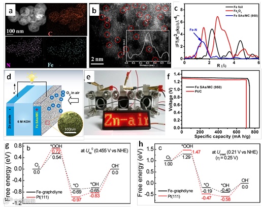 铁(Fe)、钴(Co)、镍(Ni)、锰(Mn)、铜(Cu)、锌(Zn)、铬(Cr)、钪(Sc)、钨(W)、铂(Pt)、铱(Ir)、钌(Ru)、铑(Rh)、金(Au)、钯(Pd)、银(Ag)基SACs及双金属基SACs可以有效地催化ORR,且它们在燃料电池和金属-空气电池的应用中已经表现出优异的电化学性能。