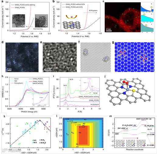 铁(Fe)、钴(Co)、镍(Ni)、锰(Mn)、铂(Pt)、铱(Ir)、钌(Ru)、铑(Rh)、金(Au)、银(Ag)基SACs及双金属基SACs能够帮助OER加快其动力学,而且它们在电解水和电池装置中已经呈现出光明的前景。